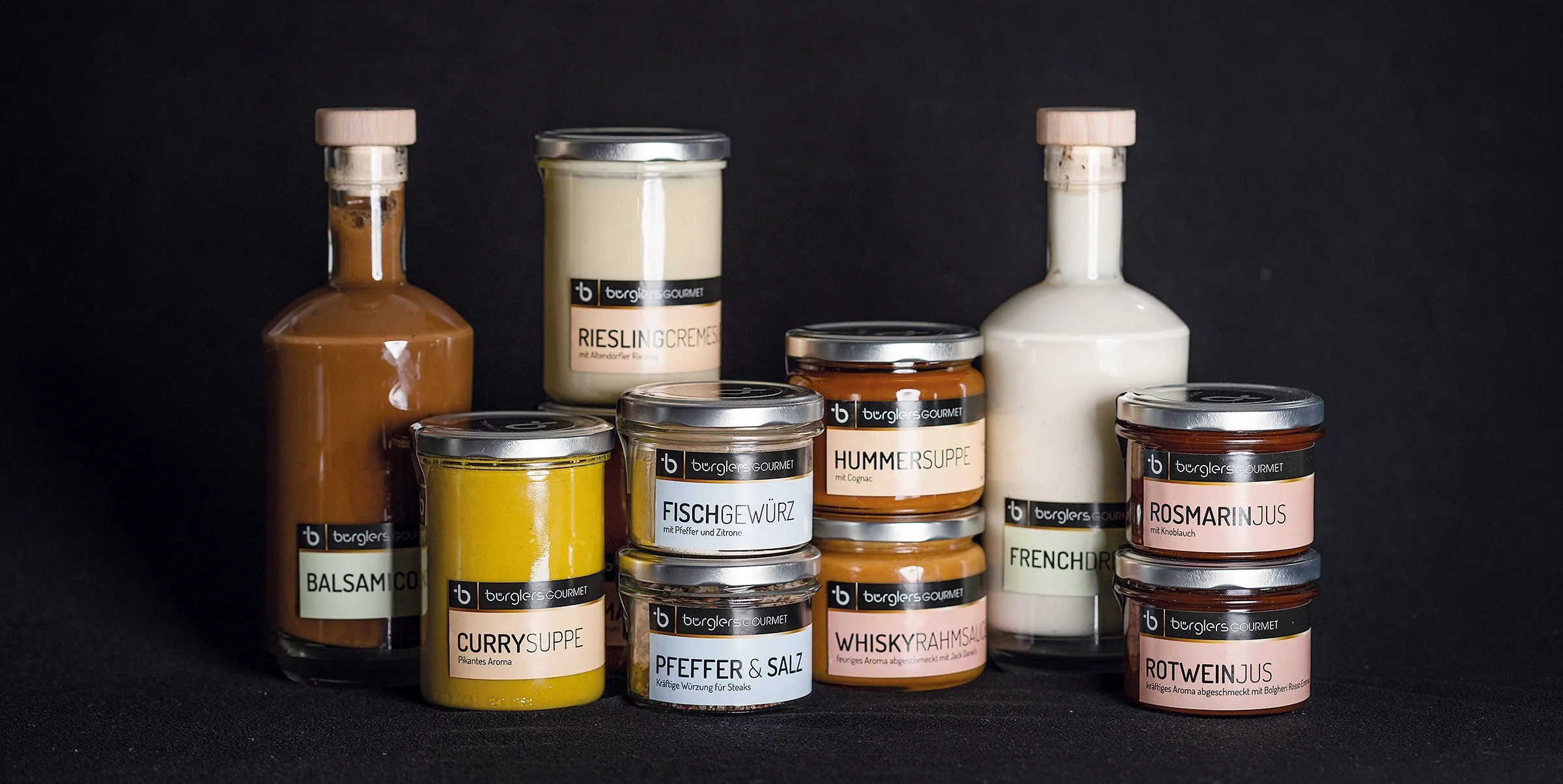 Bestes Fleisch abrunden mit einer WHISKYRAHMSAUCE oder PFEFFERRAHMSAUCE. Dazu einen schönen Wein aus unserem Emmaia-Sortiment und der Genuss kann beginnen… oder Sie setzen Ihre Haussauce aus unserem ROSMARINJUS oder ROTWEINJUS an.